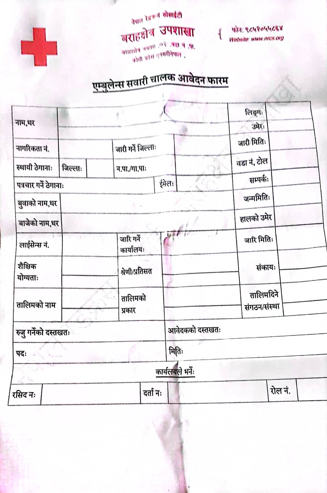 सवारी चालक करार सेवामा लिने बारे नेपाल रेडक्रस सोसाईटी बराहक्षेत्र उपशाखाको सूचना